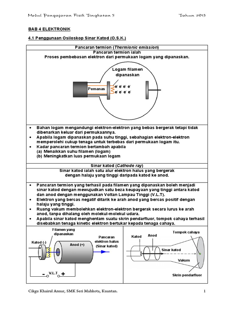 Fizik Spm Dalam Bahasa Melayu 5 9 1 Osiloskop Sinar Katod Osk Pdf